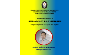Suluh Wisnu Hapsoro Telah dilaksanakan ujian Tesis an. Suluh Wisnu Hapsoro Selamat dan sukses kepada mahasiswa Prodi MM FEB UNDIP yang telah dinyatakan lulus ujian Tesis pada hari