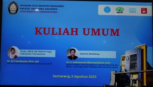 Pada hari SAbtu, 5 Agustus 2023, Program Studi Magister Manajemen Universitas Diponegoro mengadakan kuliah tamu bagi mahasiswa angkatan 63 MM UNDIP. Dosen tamu pertama mengangkat