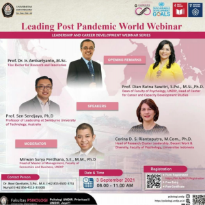 Conclusion of the Leading post Pandemic Webinar, which was held last 3 September 2021. Today, society is entering “The Great Reset” era, where the relationship